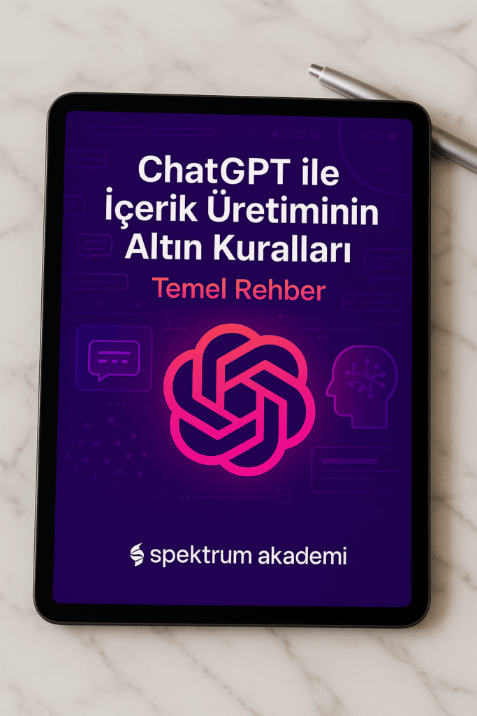 Spektrum Akademi, yapay zekâ destekli içerik üretimiyle dijital dünyada fark yaratmak isteyen bireyler ve girişimciler için kurulmuş bir eğitim ve kaynak platformudur.